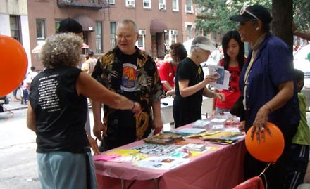 August 30: Educational and career outreach, health information, and support groups for teens and families along with food, music, face painting and fun — City Council Rep, Melissa Mark Viverito sure knows how to throw a party. Nydia, Judy, one Joan and both Barbaras are joined by our new friend, Kevin, from Brooklyn for Peace. Our table is set up with stacks of Opt-Out forms, Truth in Recruiting information, information about alternative opportunities to the military and candy — lifesavers and lollipops. Turns are taken holding down the table as the others fan out to engage the young participants and their parents.