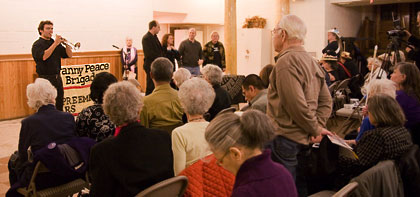 Michael Irwin, who played Taps. The format allowed 10 minutes for each speaker and, after a break, a performance by the Metro NY Raging Grannies, then a Q&A session.