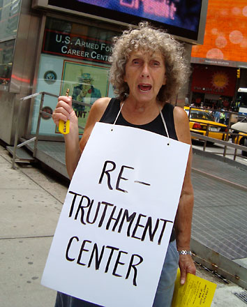 Friday, we were back on Military Island in front of the Times Square recruiting center with our signs and chants: