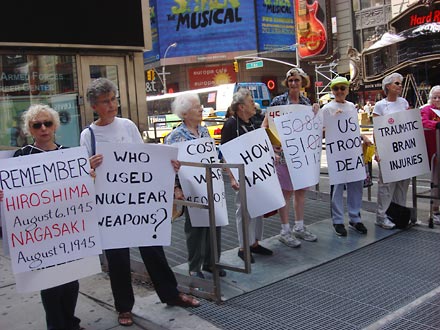Granny troops stand abreast of the Recruitment Center gangway today. Nice breeze, friendly clouds on a hot day. Retruthment is our way. We have revised numbers of fatalities to report.