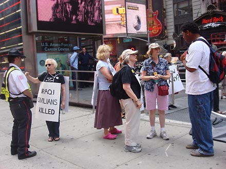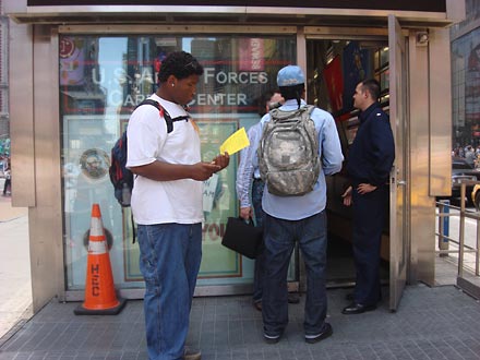 As he left the center, the man engaged with us about the facts. A Times Square security guard did too.