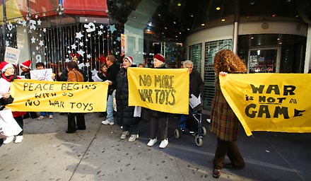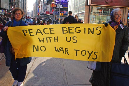 On December 4th the Granny Peace Brigade returned to the Times Square to say loud and clear, NO WAR TOYS!”