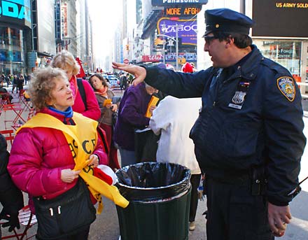 Part of our group gathered outside the recruiting station in Times Square. As soon as the police realized we were demonstrating they asked us to “move along.”