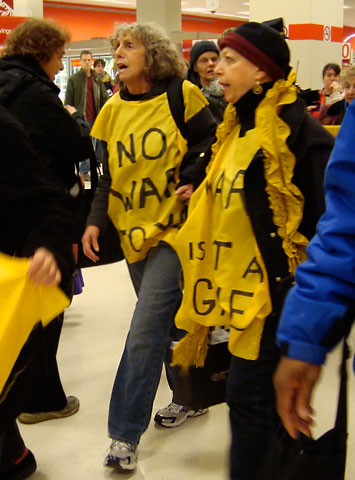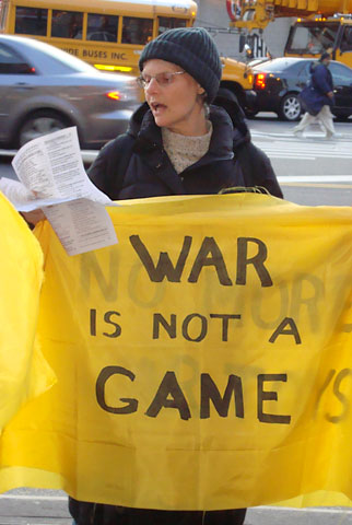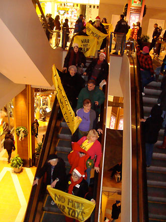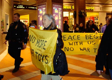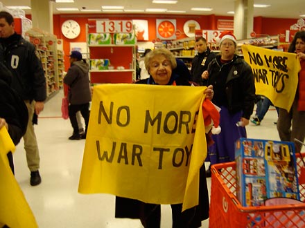 NO MORE WAR TOYS, NO MORE WARS An action-based reminder that our wonderful smart kids and grandkids need smart, not war-mongering, toys. After our first wildly successful endeavor in Times Square on December 4th, we decided to take our message to a Target in Brooklyn.