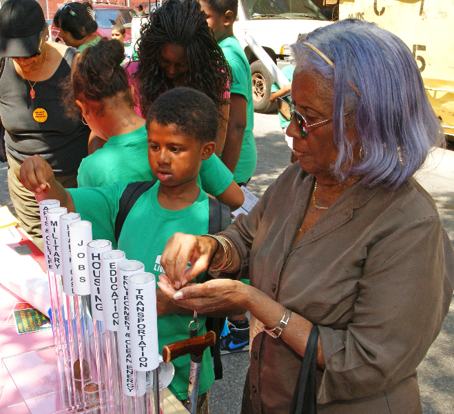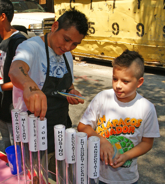 Passersby took the time to consider the categories posted on the penny tubes and then vote how their tax dollars should be allocated.