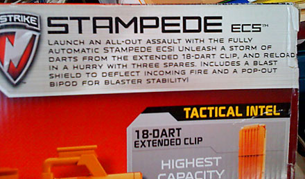 They brought with them Hasbro’s Nerf Stampede Blaster, a gun Hasbro promises will make vigilantes of your children, and which was nominated for (and won) the BOY TOY OF THE YEAR AWARD Award.