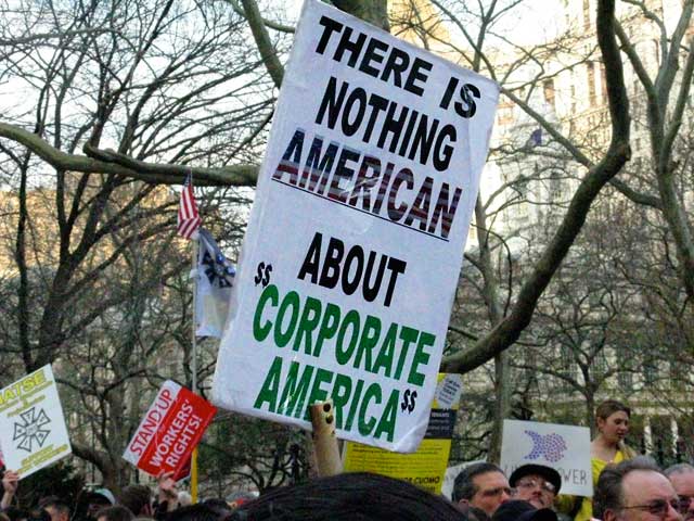 Afterwards we wandered through the crowd, checking out the signs. And why, you may wonder are these gentlemen smiling? See Below! They’re smiling at our tunics, with the sign — Democracy is Not a Spectator Sport.