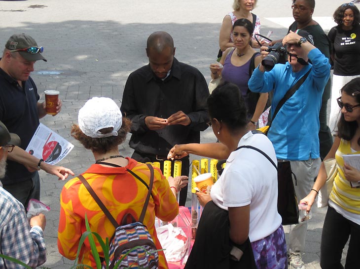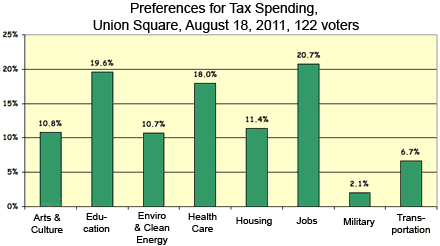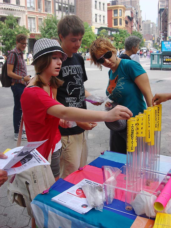 You see those plastic bags people are carrying today in Union Square? They’re approaching the table where they will concentrate on voting with the 20 pennies in each bag. It’s all about how they believe tax dollars should best be spent.