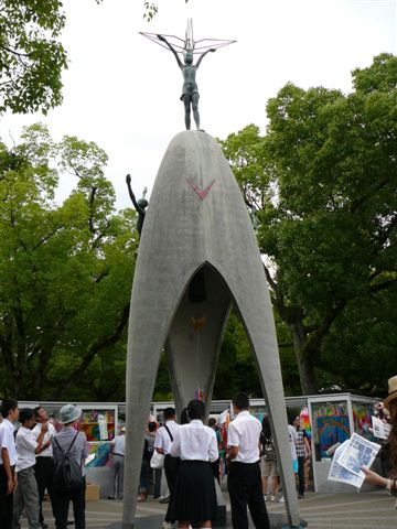 The Children’s Peace Monument is a bronze statue of Sasaki Sadako, the twelve year old Hiroshima girl exposed to radiation in 1945 who died of leukemia in 1955. She folded a thousand origami cranes hoping it would bring her long life.