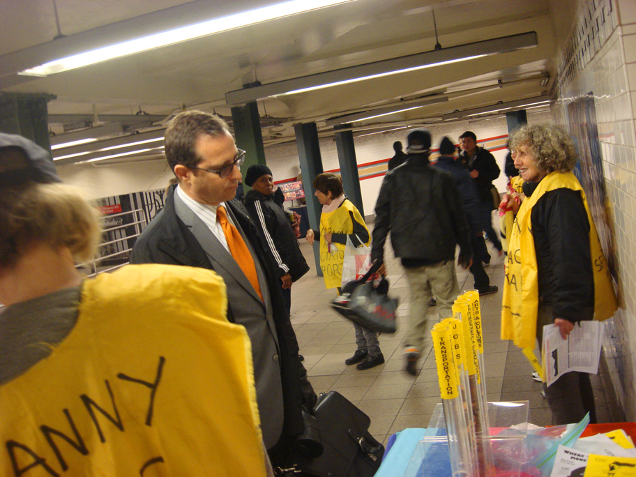 A week of grim news. The terrible carnage wrought by a U.S. soldier in Afghanistan. Syria in shambles. And here at home, conservative wing-nuts are waging war on us women. How do we combat this onslaught of negativity? Maybe getting ourselves out in the public arena will help, and what better location than Union Square. So what if it’s raining — the subway station is big, busy and makes a great place to set up shop with Ms. Gizmo.