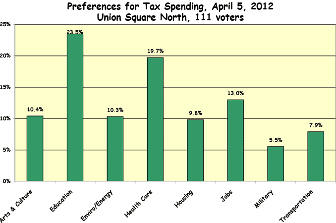 We were happy that the wind did not blow over Ms. Gizmo, our device for gathering opinions on tax preferences of passersby. Some voters took a lot of time because it is a serious matter.