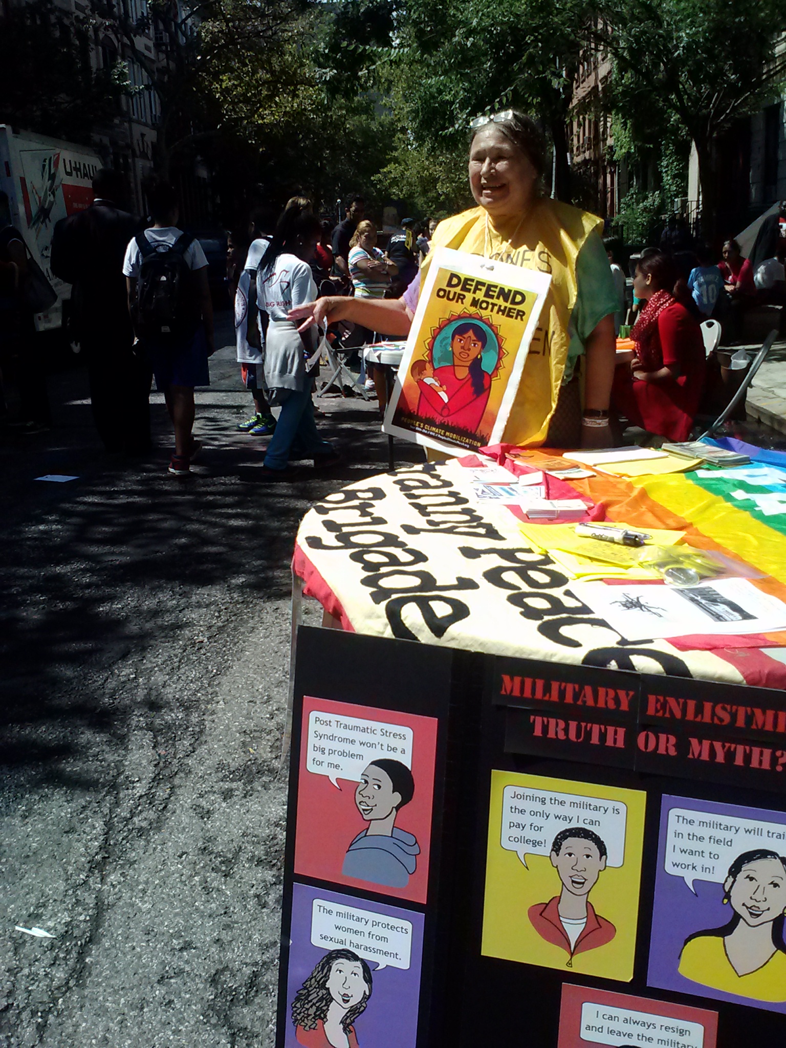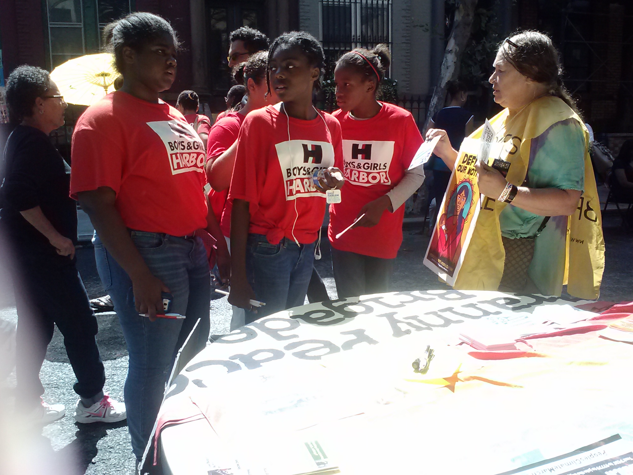 Barbara Walker, Edith, Marty, and I tabled at the East Harlem Youth Fair, Wednesday 8/13. We provided materials and conversation concerning military recruitment, Drone issues, and the September Climate March in NYC.