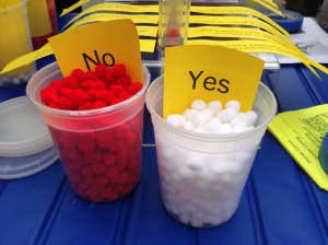 Drop a pompom into a tube to vote. 2014-10-10 Posted on October 16, 2014December 29, 2019 by grannypeacegmailcom