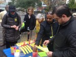 Meantime, we heard diverse points of view. Caroline dropped her leaflets. Before they could blow too far, a tall guy kindly helped her gather them up. He was interested in who we were: how many, where from. He addressed each question thoughtfully, at first seeing military use of drones as most efficient in terms of loss of lives. He would not want to limit the police in their choice of tactics…but, (as he continued down the list of questions) drones might not be the most cost-effective way to police the city…