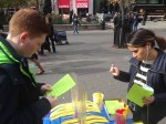Phyllis was busy handing out fliers, but later she noticed, this girl was still standing near the gizmo table, talking with others, explaining the poll to them. Success!!! Over 100 people took the poll. The rain held off until we packed up and headed for lunch to tally the votes. The questionnaire worked well except for #2 that we’ll revise.