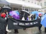 Perhaps due to the heavy rain, the turnout of supporters (maybe 30) and media (maybe 5) was limited, but an excellent group of speakers clearly indicated the reasons why the coalition opposes the visit. The progress in the Boycott, Divestment, Sanctions movement was highlighted.