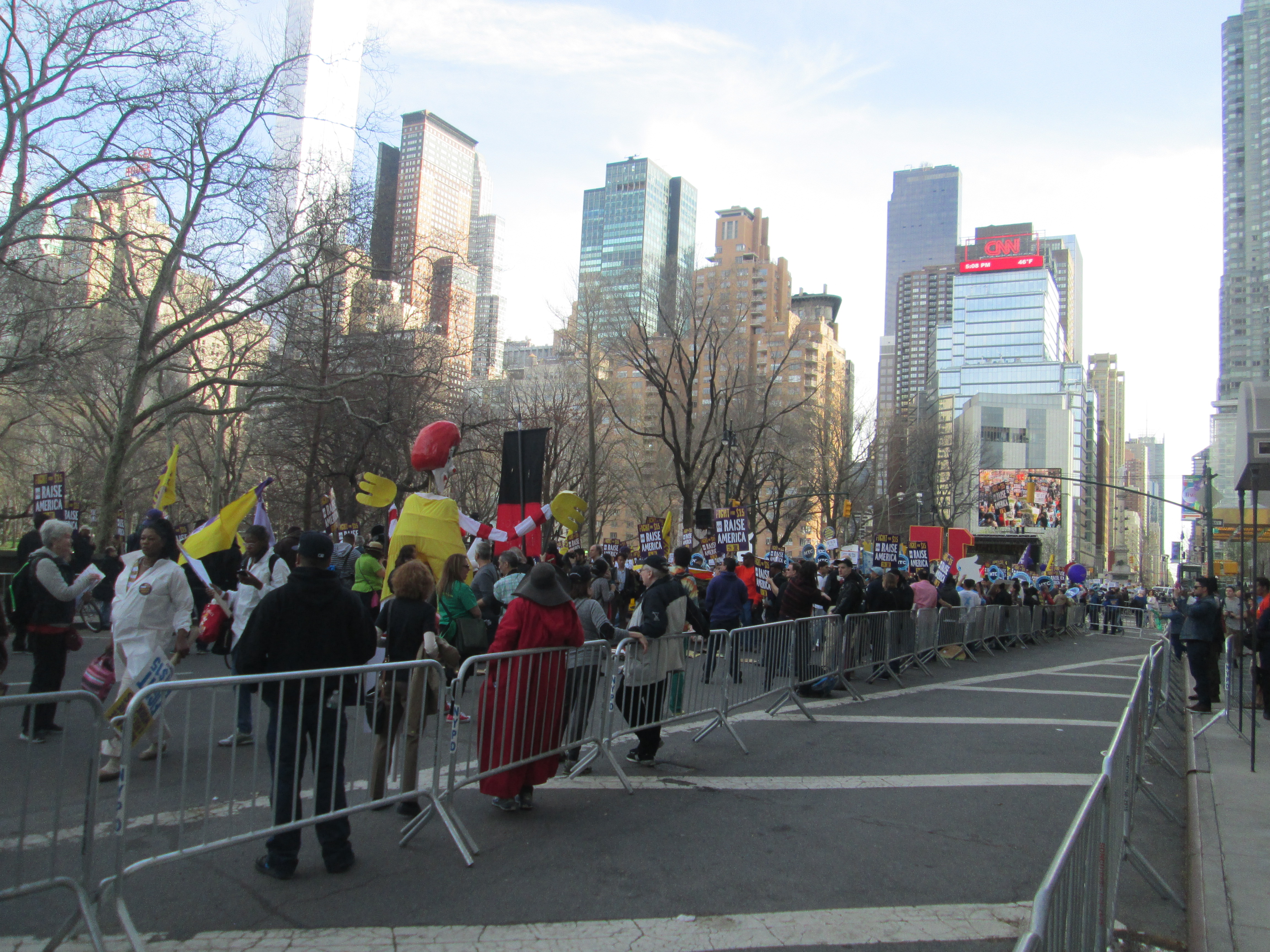 The rally was long and we did spend some time resting our bones on a nearby bench. In our defense, a number of us had marched the day before from Union Square across the Brooklyn Bridge in the demonstration organized by Stop Mass Incarceration. It isn’t always easy to keep up.