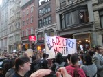 Sorry, I have diverted a bit….but will get back to Tamir. The rally at Union Square was one of the largest I have seen there….. groups of mostly young people but all ages were there, scattered throughout the park….on 14th Street, by the Gandhi memorial, with the largest group by the speakers at the North end. It was a peaceful event, however police were well prepared with barriers around the park, their white vans lined up along 14th Street. Eva-Lee, Edith and I stood with the banner: Black Lives Matter at the fringe of the rally….it was packed and the noise level was too high to even hear speakers. Ann and Jenny were also there. We were interviewed by a team from MSNBC part of the Ed Show. We were one of many groups (eg. Nancy was there with the Quakers) in support of Freddie Gray and all the others killed by police under very questionable circumstances. My favorite sign was: Blue Lies Matter.