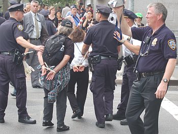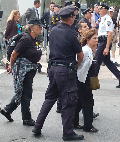 I have known for several years now Carol from the Granny Peace Brigade and Peace Action. For me, she was like a tree,strong protective,seemingly eternal- but a tree with a great sense of humor. When the Grannies made a trek from New York to DC in 2006, we created actions and performances along the way. Carol had the idea of embodying the odious Barbara Bush: with a white wig and large pearl necklace, she hilariously impersonated the cold calculating mother of the mindless, scary cipher occupying the White House.