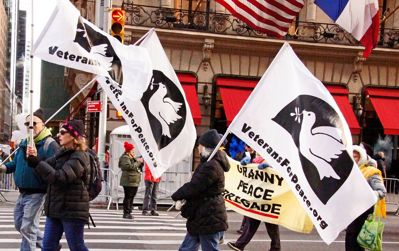 Last month, the Granny Peace Brigade walked up 5th Avenue with Vets for Peace in the Veterans Day commemorations. As usual, we were virtually at the end, followed by high schoolers, both boys and girls, proudly marching in proper soldier form, from various J-ROTC (Junior Reserve Officer Training) groups In the city. Teens marching as soldiers, sometimes with mock rifles, is not our vision for these children.
