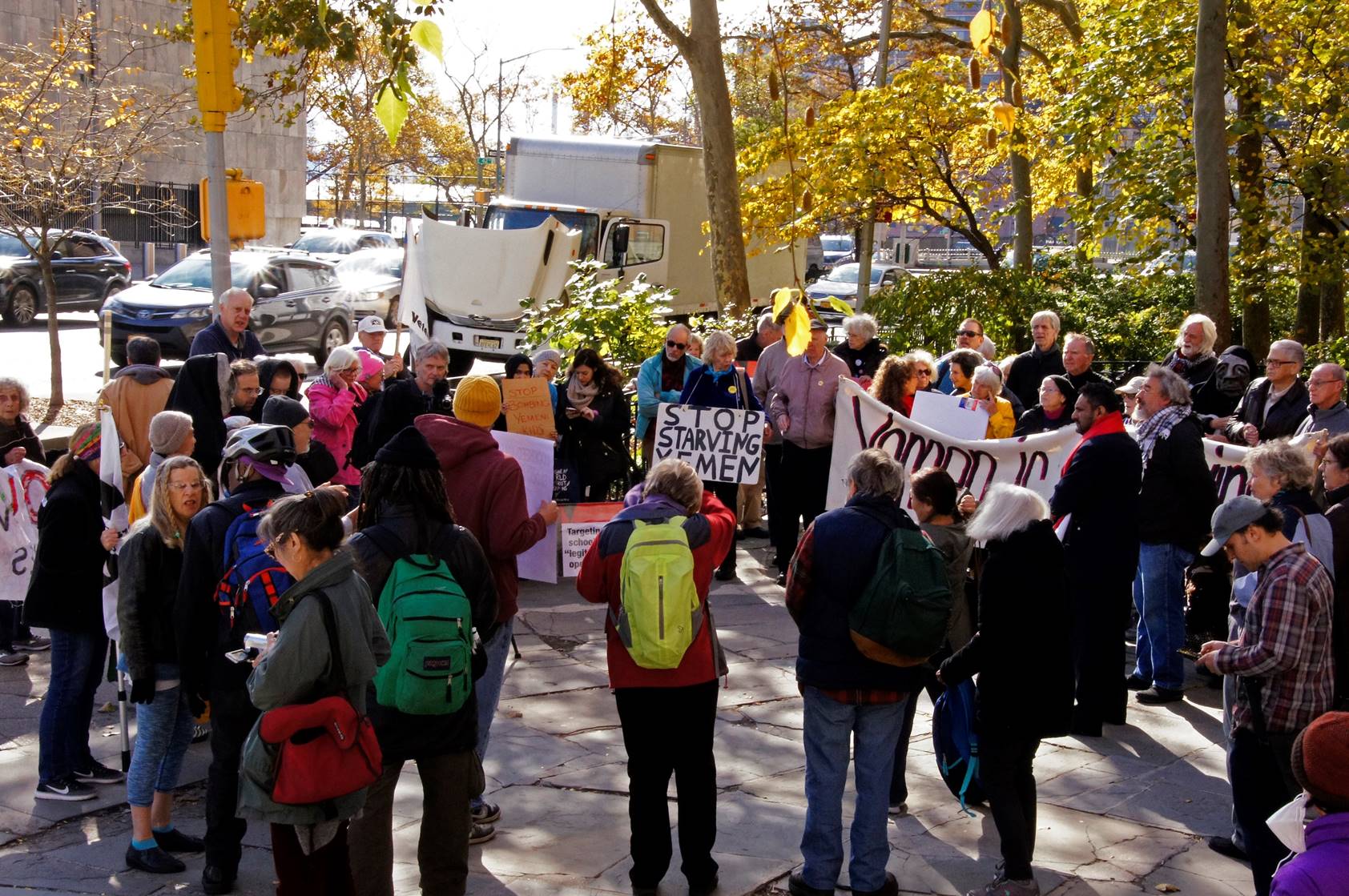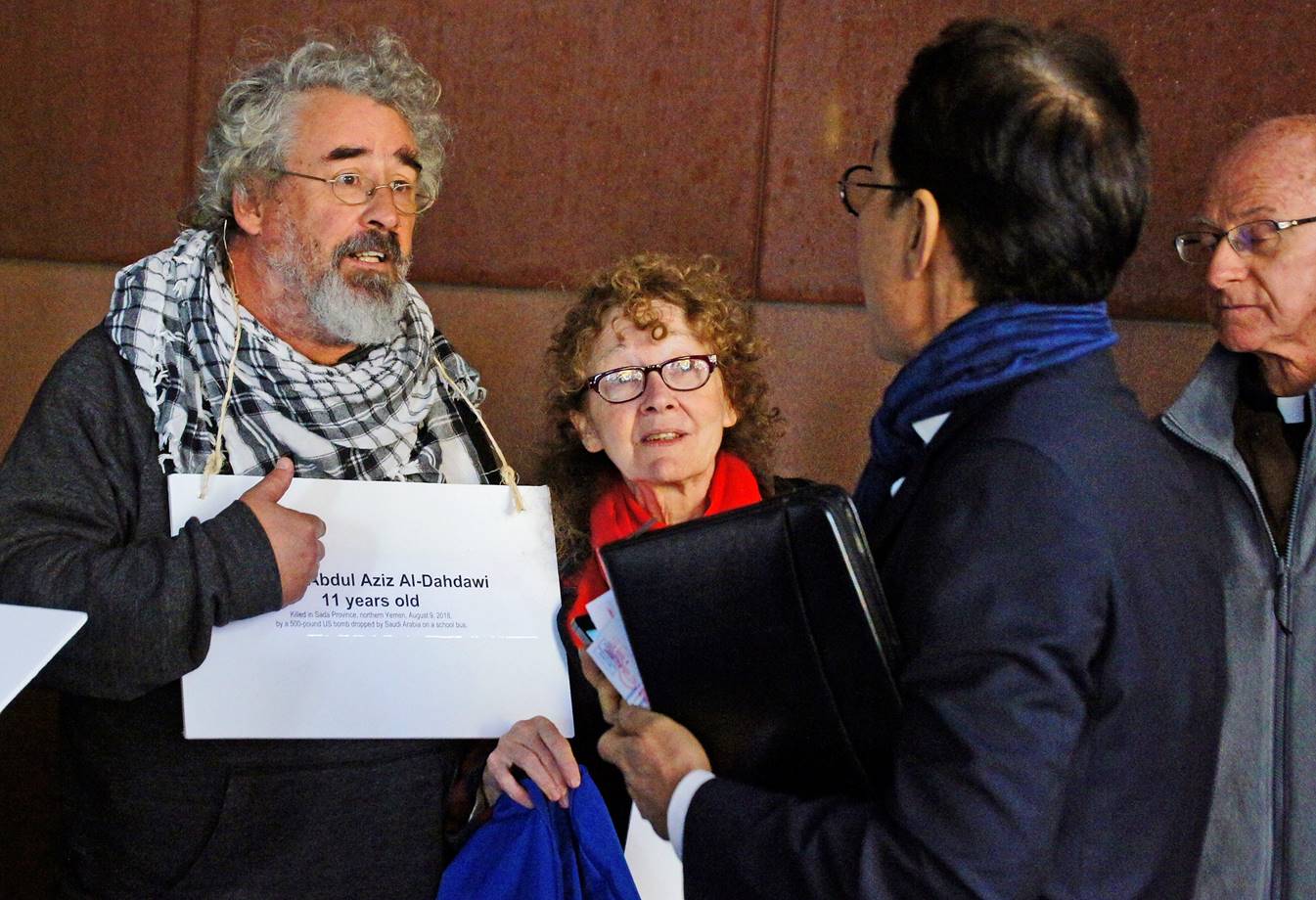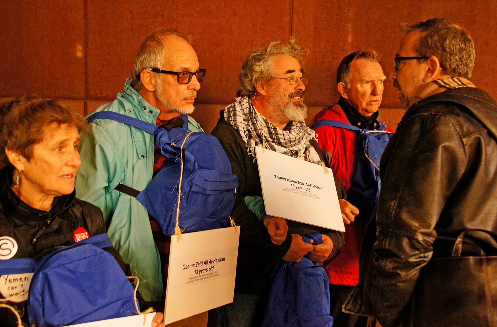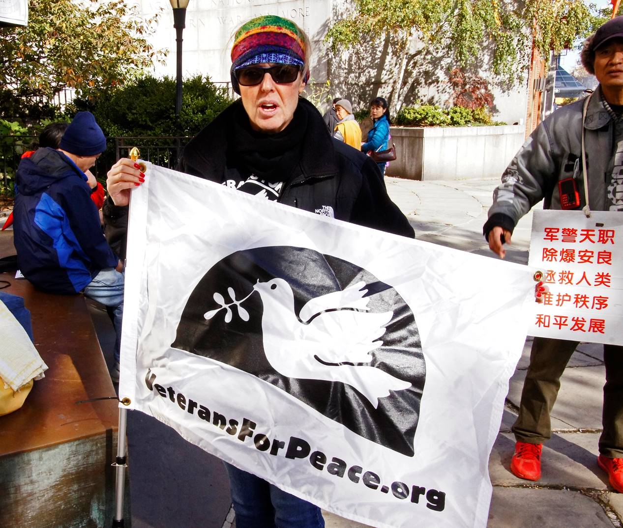 Kathy Kelly from Voices of Creative Nonviolence called for three days of protests at the United Nations and the U.S. and Saudi Missions, as well as the Saudi Consulate. The Granny Peace Brigade joined Catholic Workers, Veterans for Peace, War Resisters League, Peace Action, Code Pink, Know Drones, Grafton Peace Pagoda and others.