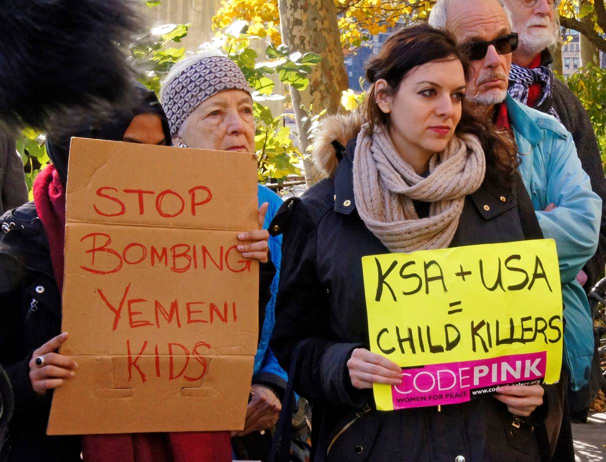 On March 22, 2015 Saudi Arabia launched a war against Yemen, a country now considered “the world’s worst humanitarian crisis,” according to the United Nations. Millions of people face starvation caused by Saudi blockades of port cities; cholera outbreaks from Saudi bombing of hospitals, water and sanitation systems; a rampant wave of destruction waged against the Yemeni people – all made possible by U.S. military support for the Saudis by providing weapons, mid-air refueling planes, and target logistics. Now in its 4th year the war rages on amid a political and criminal thicket of deception, cynicism and hypocrisy.