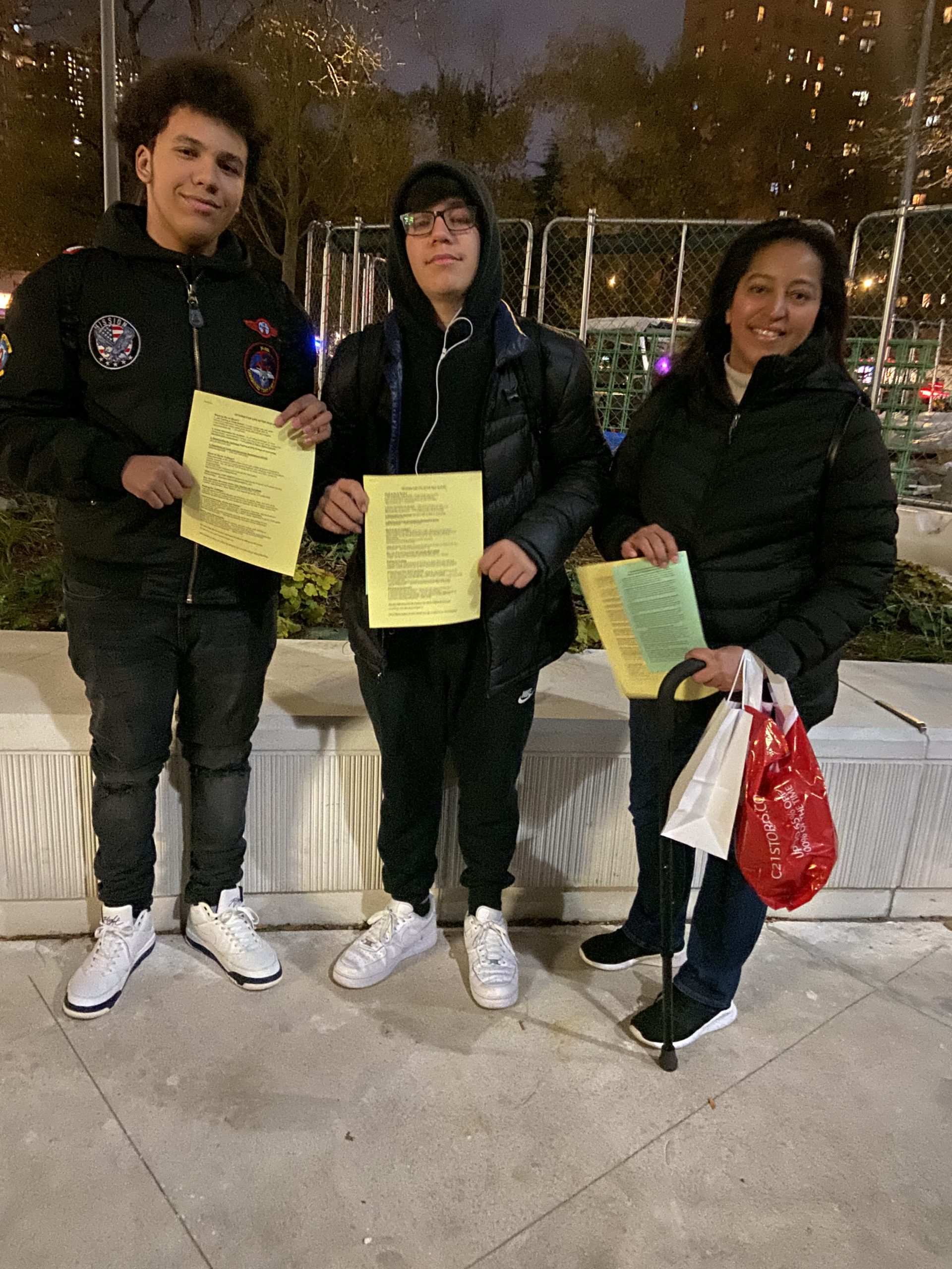 On a mild Thursday evening, 28 volunteers were at 12 high schools in NYC to meet parents and students as they were entering their school to meet with teachers. Volunteers had 2 informational flyers to give to each parent.