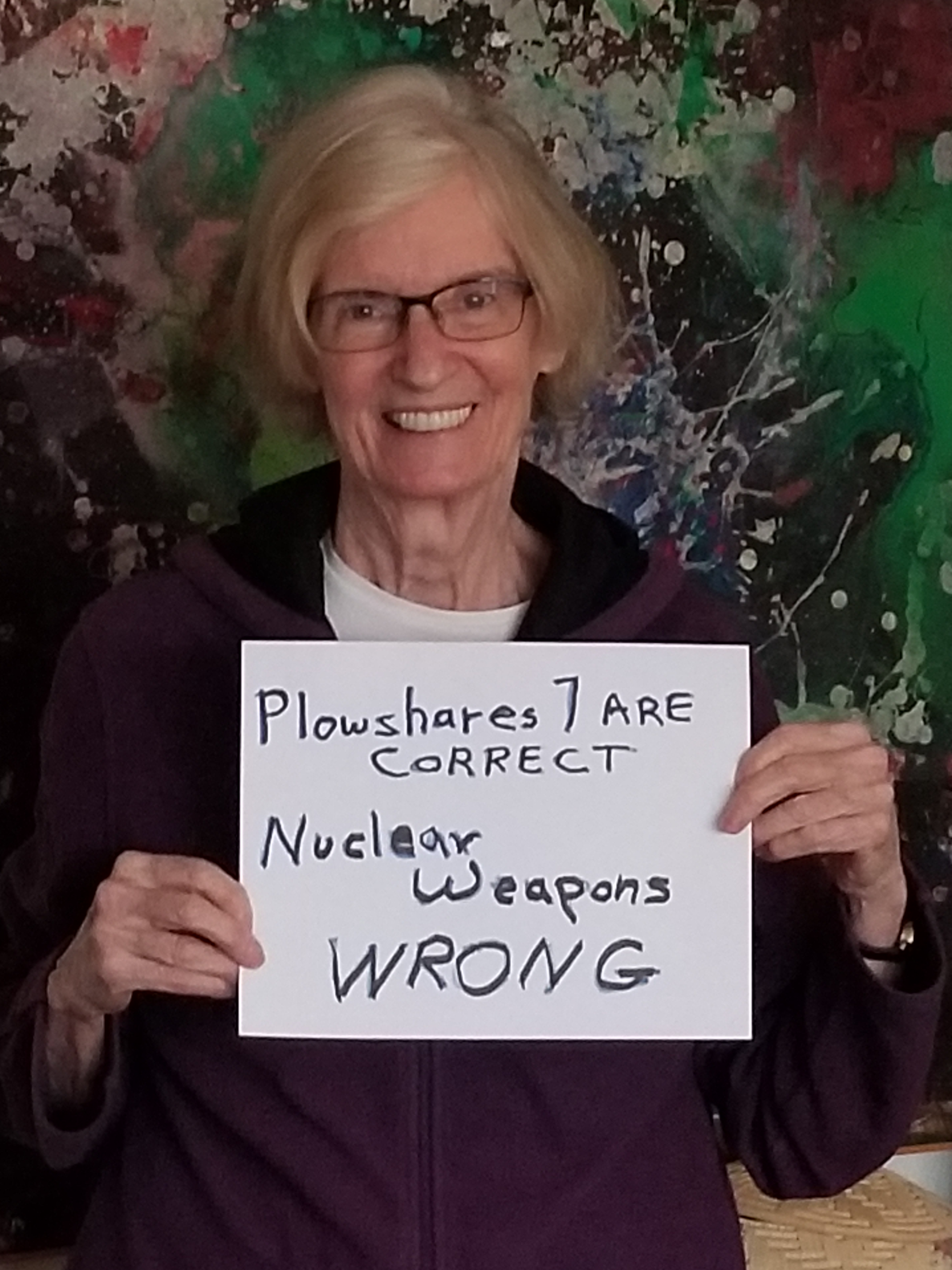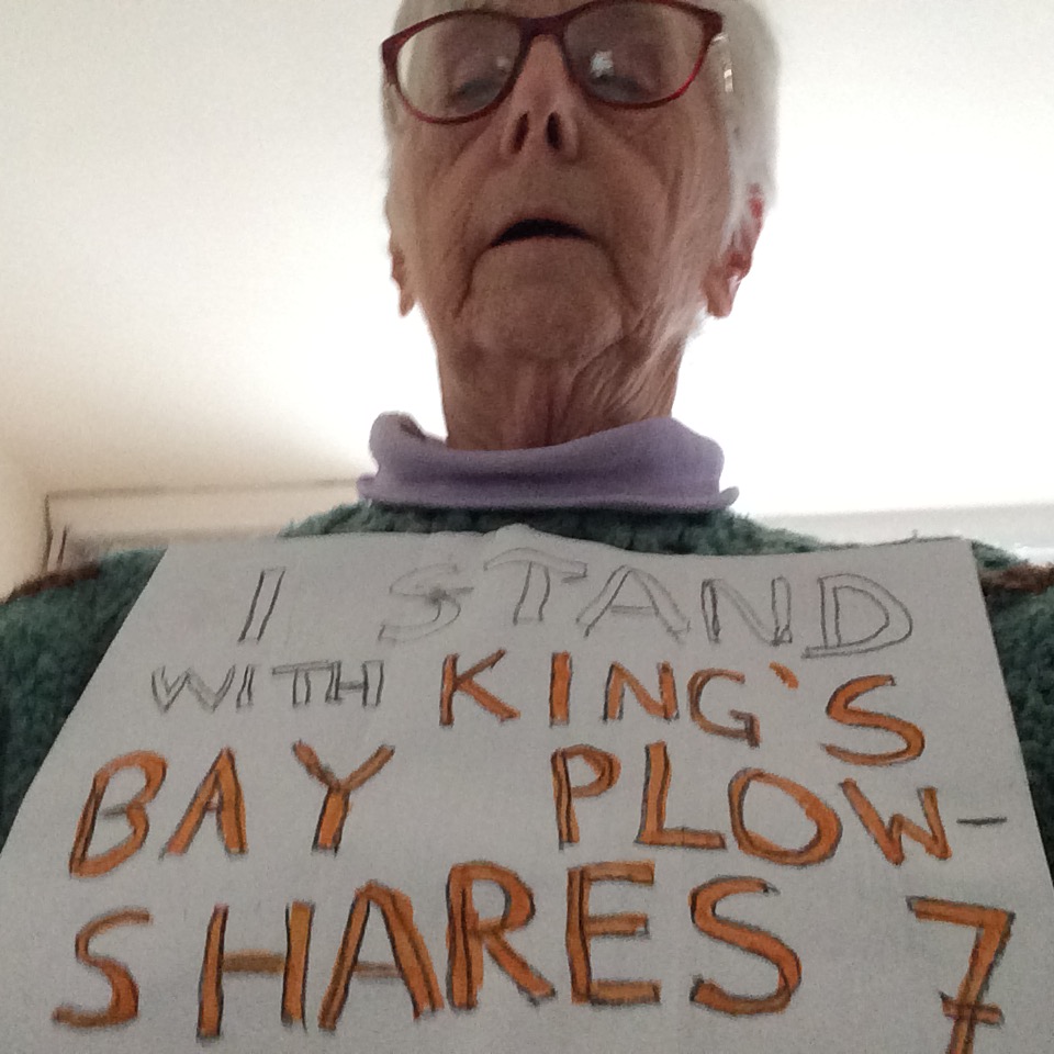 On this second anniversary of the Kings Bay Plowshares 7 action we Grannies honor their fierce courage in challenging those who seek war over peace and death over life. We have stood with them in solidarity at protests, vigils and marches over many years. During this current period of isolation and the global reach of the COVID-19 epidemic, we thank them for being a source of inspiration and light. Stay safe – our fragile world needs you.