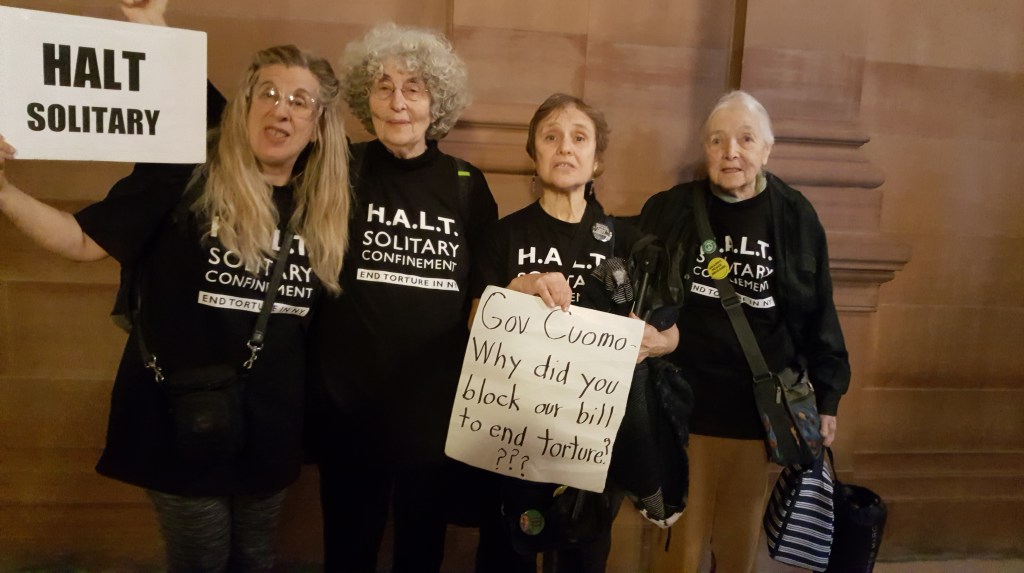 With the RAPP Campaign, (Release the Aging People in Prison), relentless GPB activist Joan Pleune, myself, and many others, made countless trips to Governor Cuomo and State Legislators in Albany. We’ve gotten to know many family members of people in prison who tell compelling and heart wrenching stories. Gov. Cuomo has consistently been unresponsive to our proposed legislation; Fair and Timely Parole (S497A/A4346A) and Elder Parole (S2144/A9040). Joan, Fran Geteles-Shapiro and other GPG members have waged a struggle to end the abuse of solitary confinement and to replace it with humanity and rehabilitation (see http://www.nycaic.org) .This bill, Humane Alternatives to Long-Term (HALT) Solitary Confinement Act (A.2500 / S.1623), the result of the labors of many dedicated people, had the support of the both the State Senate and State Assembly last session. Majority State Senate Leader, Andrea Stewart Cousins, Carl Heastie, Speaker of the New York State Assembly, and Gov. Cuomo prevented it from coming to a vote